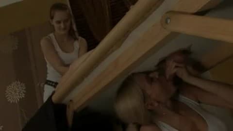 Eine Gruppenszene, die eine Blondine, eine Brünette und zwei Bisexuelle involviert. Eines dieser Mädchen hat einen Umschnalldildo und fickt damit.