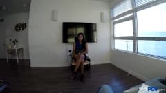 Ela tem vergonha de tirar a roupa lentamente, mas logo ela vai provar seu valor transando com o cara da Reverse Cow Girl. Que corpo lindo e quente.