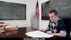Uma bela aluna oferecerá suas habilidades ao professor para tirar uma boa nota. Ela chupa o pau do professor e é fodida na mesa. E tudo termina com facial!
