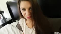 Uma garota bonita de cabelos longos concorda em foder seu irmãozinho