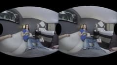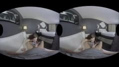 Morena bonita e jovem chupa apaixonadamente o pau em VR