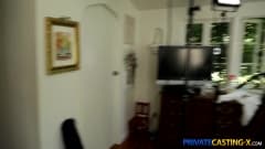 Essa safada loira vai a um casting pornô, ela diz que é a primeira vez, mas ela o faz como uma profissional. Ele engole sua dose de leite quente.