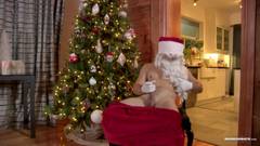Este Papai Noel não é como qualquer outro que vimos. Ele tira suas roupas e começa a se masturbar ao lado da árvore.