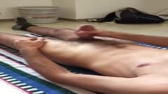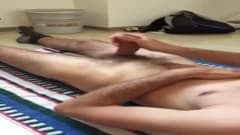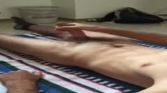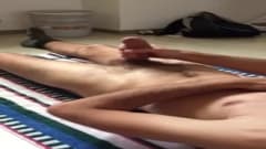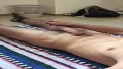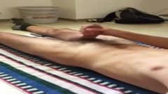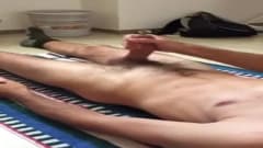 Este jovem fica no chão completamente nu e começa a se masturbar e vai transmitir tudo através da webcam.