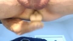 Este velho tem o seu pau duro e quer ficar muito mais excitado masturbando-se. Ele colocou os dedos na bunda para ter muito prazer.