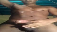 Aqui vamos ver um homem forte que fica nu em casa e começa a se masturbar na frente da webcam. Ele quer prazer sozinho.