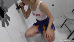 cheerleader gostosa salta a aula para ir ao GloryHole dar uns boquetes