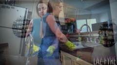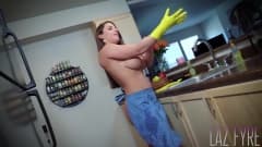 Quando o enteado encontra a sensual madrasta limpando com suas grandes mamas ao ar livre ele lhe dá seu presente como a melhor mamacita.