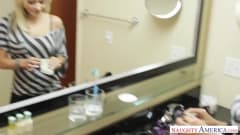 A loira sexy Briana Blair, com peitos empinados, quer a carne gorda de seu amante totalmente dentro de sua buceta apertada.