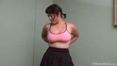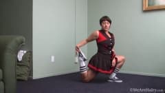A líder de torcida Sarah Rose mostra algumas de suas coreografias. Ela acaba se despindo e masturbando sua buceta peluda até o orgasmo.