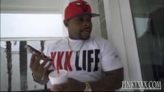 Chegar a casa esperando que ela abra quando ela o surpreende no quintal vestindo sexy e esperando que ele a foda