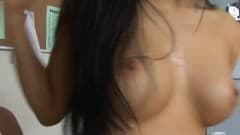 Há um estudante asiático em um vestiário. Um pênis útil ajuda-a no vídeo de hoje, é claro.