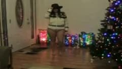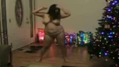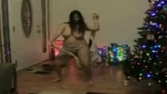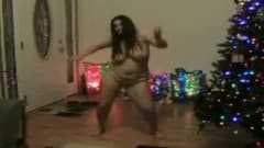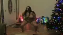 O Natal é quando esta morena gordinha tem mais tempo livre para apreciar seu corpo, e ela dança nua ao lado da árvore.
