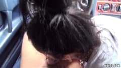 Vanessa Rodriguez não tem nenhum problema em se ajoelhar e chupar um pau dentro de um carro. Puta safada!