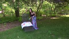 Essa cena de sexo ao ar livre vai nos encantar, vamos ver como essa morena se masturba usando apenas seu brinquedo sexual