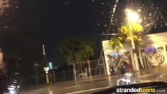 Esta jovem pede uma carona para ir para casa numa noite chuvosa. Para agredecer a generosidade do motorista ela chupa o pau dele e dá a bucetinha!
