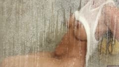 Morena gostosa no chuveiro tenta seduzir ficando molhada e mostrando seus peitos grandes e começa a se masturbar