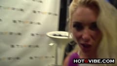 Loira safada se masturba em publico com dildo