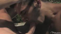 Este gay se chama Ray Diaz e quer aproveitar o corpo nu de seu amigo Woody Fox, que quer fazê-lo feliz transando na piscina.