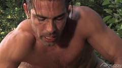 Christopher Daniels é maduro e gosta de passar momentos deliciosos com um gay que suga seu pau enquanto eles ficam excitados juntos ao ar livre.