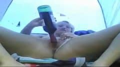 A moça foi acampar com seu namorado, mas em certo momento ela vai à loja para se masturbar sozinha e gravar tudo.