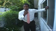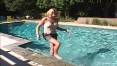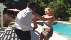 O segurança encontra uma linda loira que entrou na propriedade para se divertir um pouco. Sorte dele que ela tem um fraquinho por rola grande e negra.