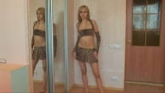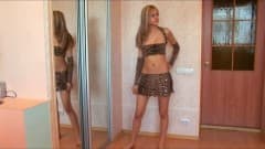 Temos uma menina gostosa que vai tocar-se sensualmente em frente ao espelho.