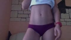 Ela está sozinha na frente de seu computador e durante um bate-papo por vídeo, ela decide se masturbar enquanto conversa com o namorado pelo telefone.