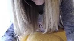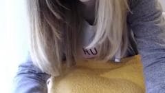 Essa loira está com muito tesão e quer se masturbar assim que ela baixa as calças e ela aparece na frente da câmera. Você vai gostar!