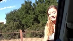 Ela foi levada para passear por seu macho, e enquanto eles estão no carro, ela pensa em pegar seu pênis para o masturbar sem parar.