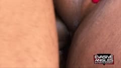 Ela senta no rosto dele, já que está quase nua, porque ela sabe que ele quer ver sua buceta muito perto. A bunda dela é enorme e as mamas dela também.