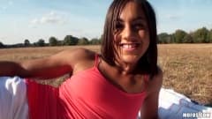 Transando com aquela buceta sexy e peluda ao ar livre, a puta excitada não via a hora de chegar em casa e começou a transar ao ar livre