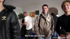 Morena pequena de óculos convida uma série de homens para seu pequeno apartamento. Eles começam a transar com ela, cobrindo-a gradualmente com seu esperma
