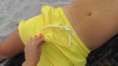 Parece que essa morena gosta de fazer sexo na praia e curte com o parceiro. Ele tem o pau que ela quer chupar.