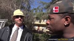 Depois de negociar com o pai, um negrão vai se divertir com uma loira novinha que adora rolas de negros. A garota fica com a buceta esgaçada e a boca cheia