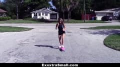A garota está andando de skate e se machuca. Um cara vai ajudá-la e ela quer brincar com seu grande pau, chupando e trepando, e ele ejacula no seu rosto!