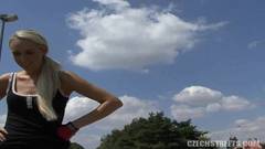 É excitante ver esta loira ao ar livre