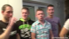 Um Gang Bang gigante para uma garota checa no cio com muitos homens só para ela. Depois disso ela pode fazer qualquer cena.