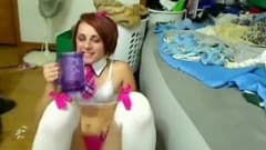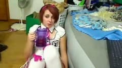 Essa moça bonitinha de cabelo curto e ruivo está prestes a apresentar à sua buceta quente e húmida os seus amigos de silicone enquanto os mergulha bem dentro dela!