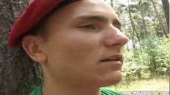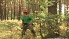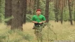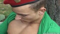 Este soldado perdeu-se do resto de seus companheiros, e ficar sozinho no meio da floresta o faz querer se masturbar de uma maneira gostosa.