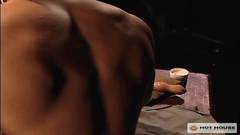 ![O pênis de Brown é lubrificado enquanto enfia um vibrador O pênis de Brown é lubrificado enquanto enfia um vibrador]()
