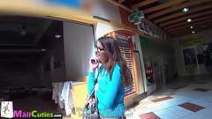O cara se aproxima de putas bonitinhas que o deixam apalpá-las para comprar roupas.