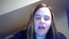 Parece que esta jovem gordinha foi desafiada a mostrar seus peitos na webcam e ela aceitou o desafio. A blusa é levantada para que possamos ver.