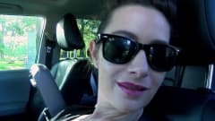 A sensual Audrie fica excitada enquanto dirige seu carro e depois de um pouco de masturbação convida um cara para acompanhá-la