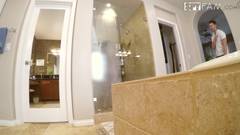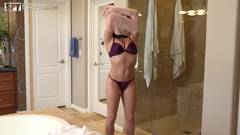 Christiana Cinn, uma pornstar que se diverte muito enchendo sua buceta com esse pau enorme. Ele a pega no banheiro quando vai tomar banho
