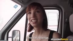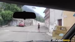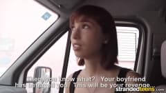 Esta safada é parada por uma ambulância ao lado dela para pedir um endereço, mas ela vai acabar indo para foder com o motorista.