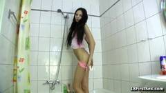 Esta morena safada de cabelos compridos passam um momento de sexo gostoso na privacidade do chuveiro com que se masturbam...
