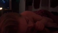 Essa mulher passa um tempo chupando o pau do marido até que ele finalmente cuspa a merda nos seios e no rosto. Ela gosta disso!