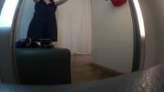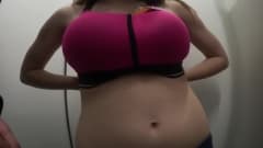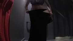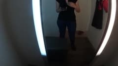 Essa prostituta começa a experimentar várias peças de roupa no vestiário de uma loja enquanto um cara a filma. Ele vai acabar chupando porra de um pau