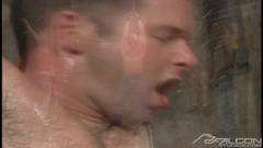 Esses gays estão na cadeia de castigo, e sendo amarrados eles não serão capazes de fazer nada enquanto os outros dois se excitam chupando seus paus.